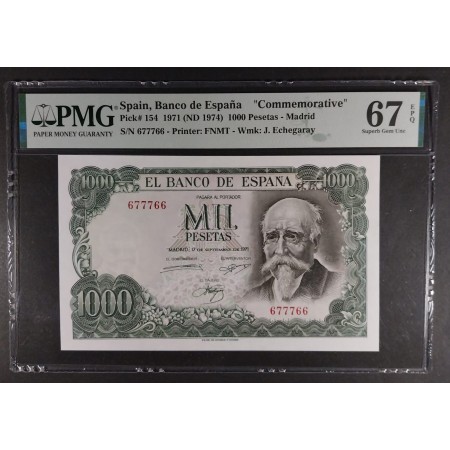 PMG 1000 PESETAS 1971 ECHEGARAY SIN SERIE PMG 67 EPQ BANCO DE ESPAÑA SIN CIRCULAR CERTIFICADO 250,00 €