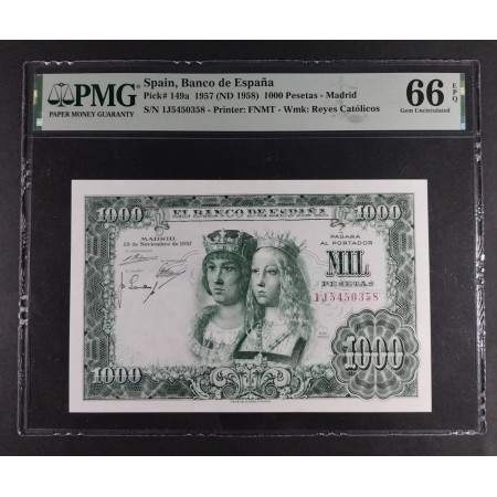 PMG BILLETE 1000 PESETAS 1957 REYES CATÓLICOS SERIE 1J PMG 66 EPQ CERTIFICADOS SIN CIRCULAR 120,00 €
