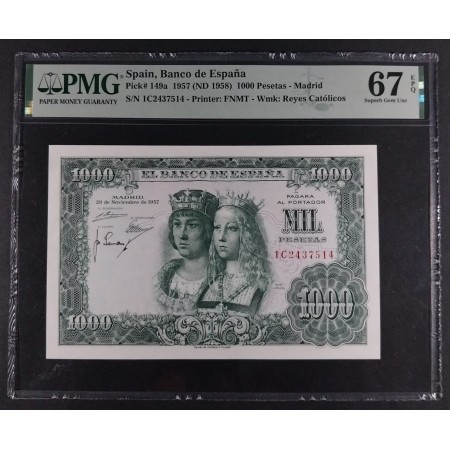 BILLETE 1000 PESETAS 1957 REYES CATÓLICOS SERIE 1C PMG 67 EPQ SC
