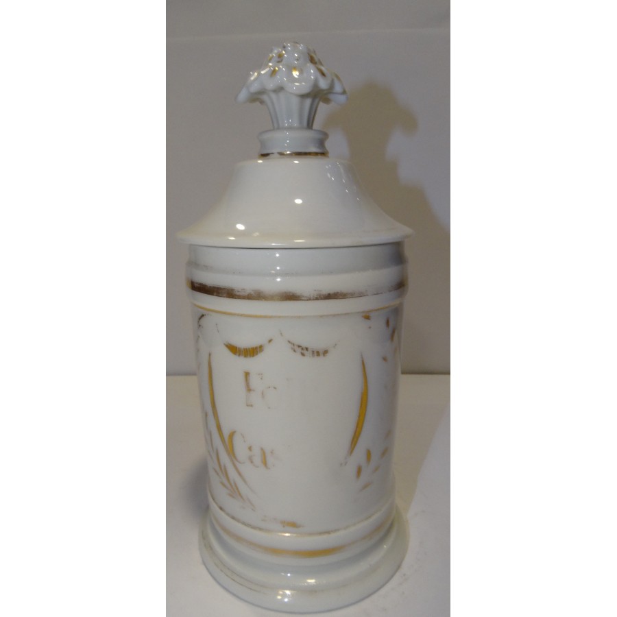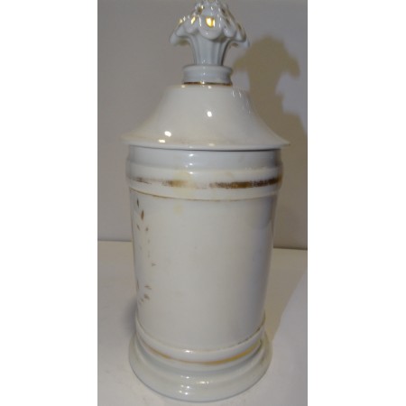 Albarelo bote de farmacia s xix porcelana muy raro tapa flor exótica novia de noche 24 cm.