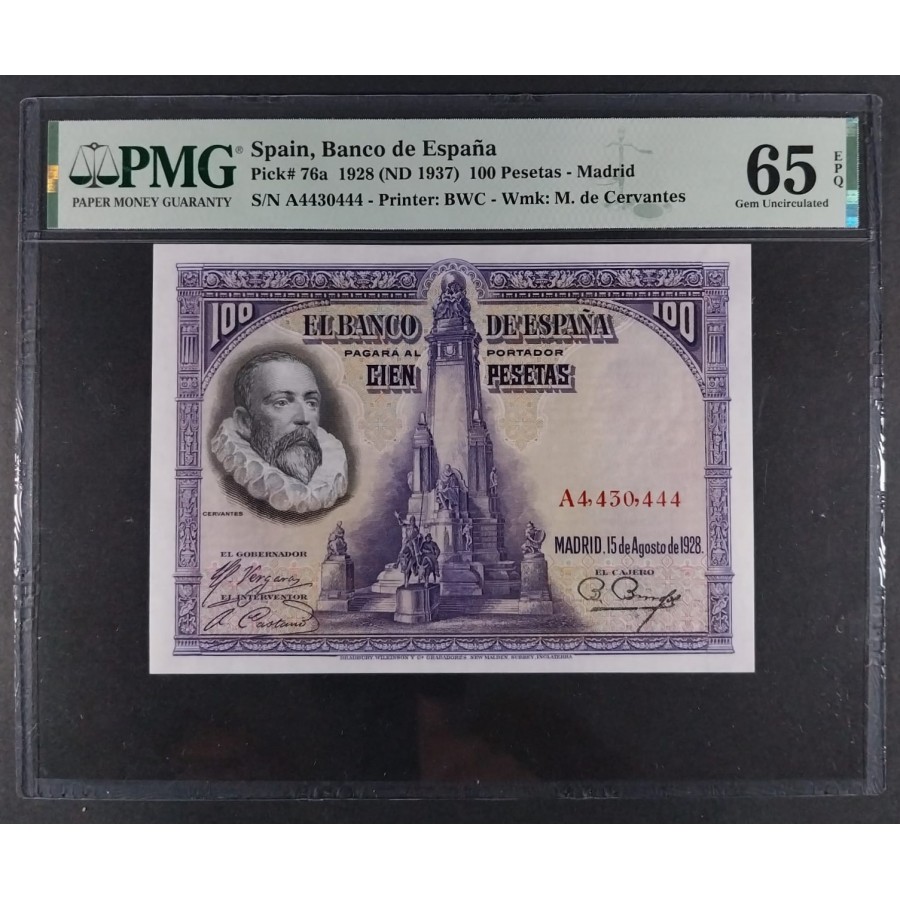 100 PESETAS 1928 SERIE A CERVANTES PMG 65 EPQ SC