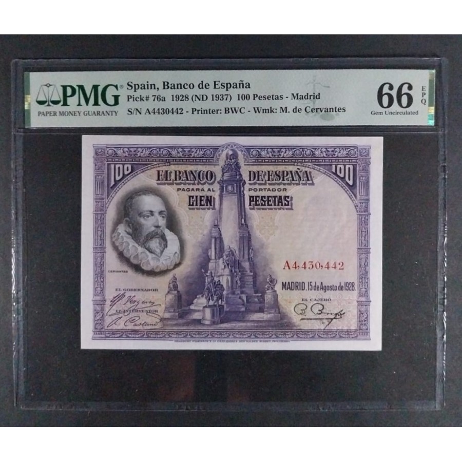 100 PESETAS 1928 SERIE A CERVANTES PMG 66 EPQ SC
