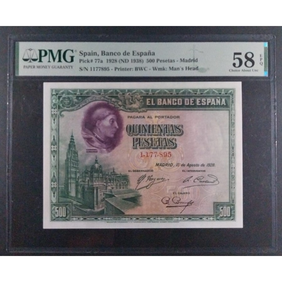 500 PESETAS 1928 CARDENAL CISNEROS PMG 58 EPQ SC