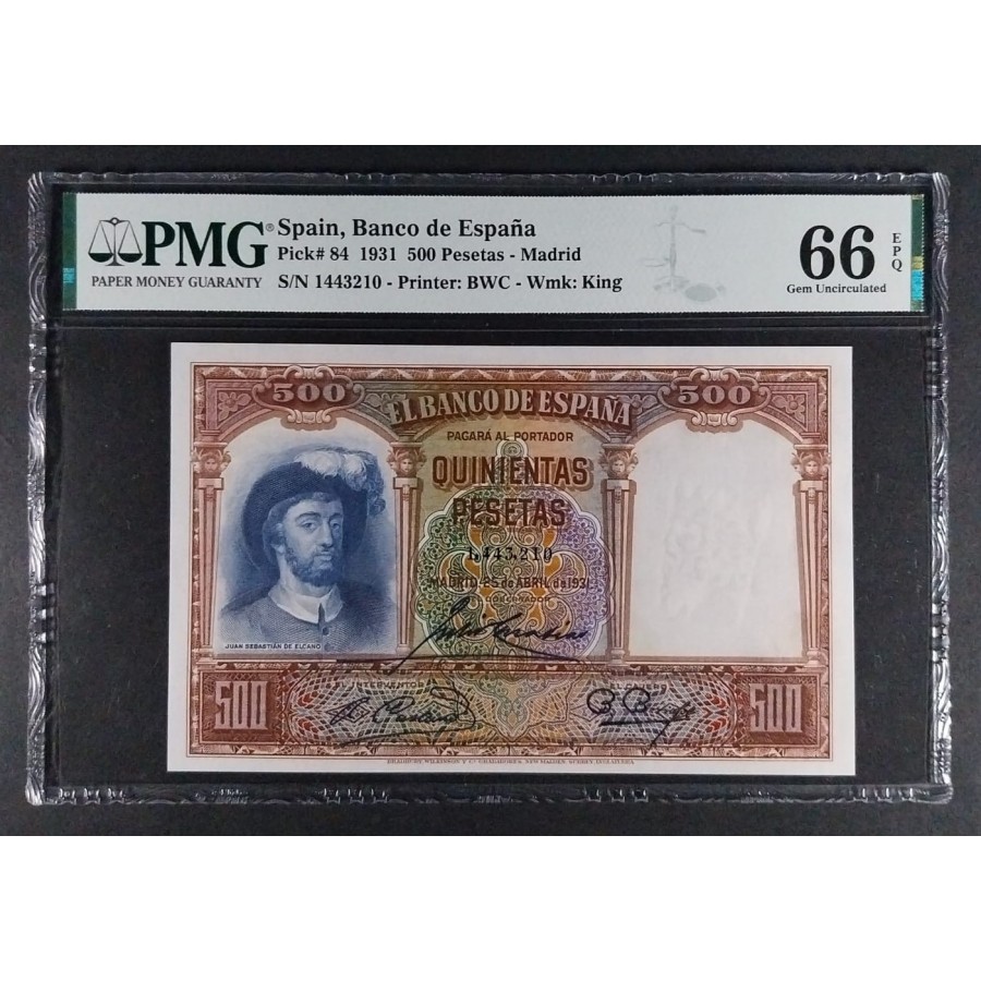 500 PESETAS 1931 ELCANO PMG 66 EPQ CERTIFICADO SIN CIRCULAR