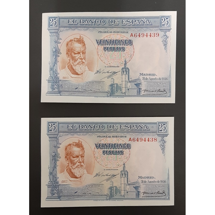 BILLETE DE 25 PESETAS DE 1936 SOROLLA PAREJA SC DE TACO
