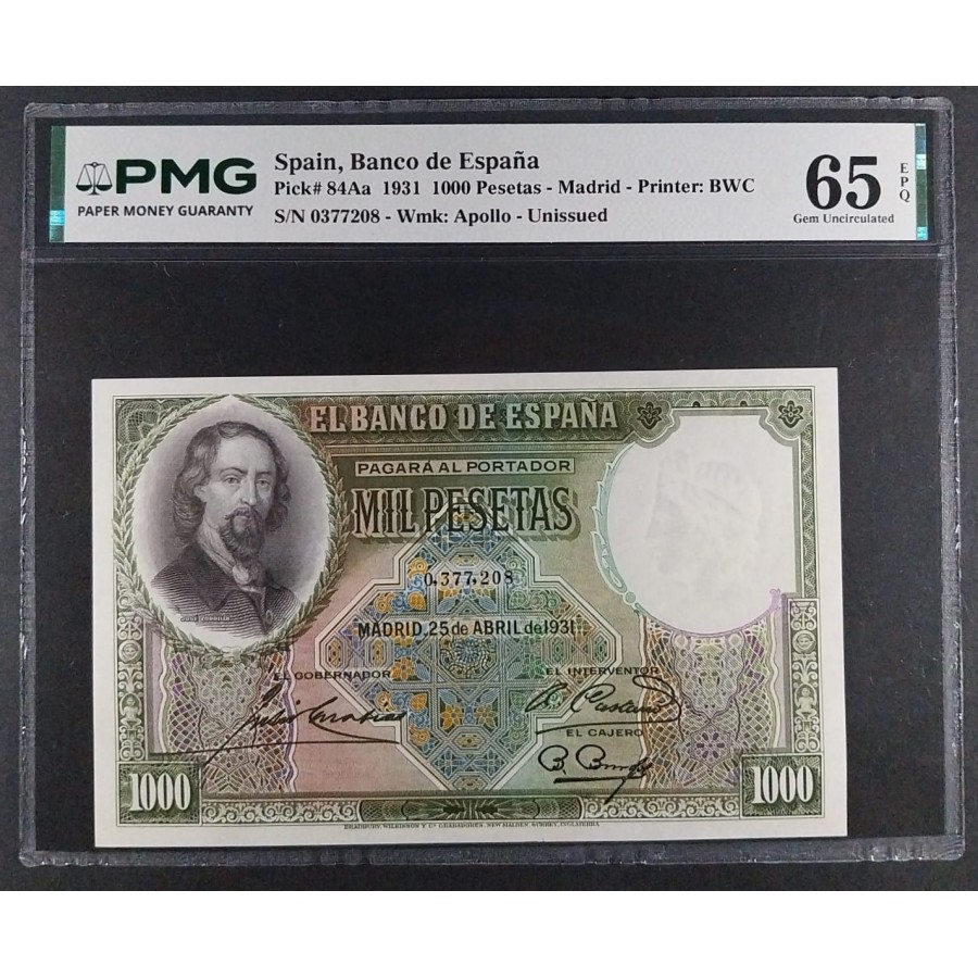 1000 PESETAS 1931 ZORRILLA CERTIFICADO PMG 65 EPQ SIN CIRCULAR