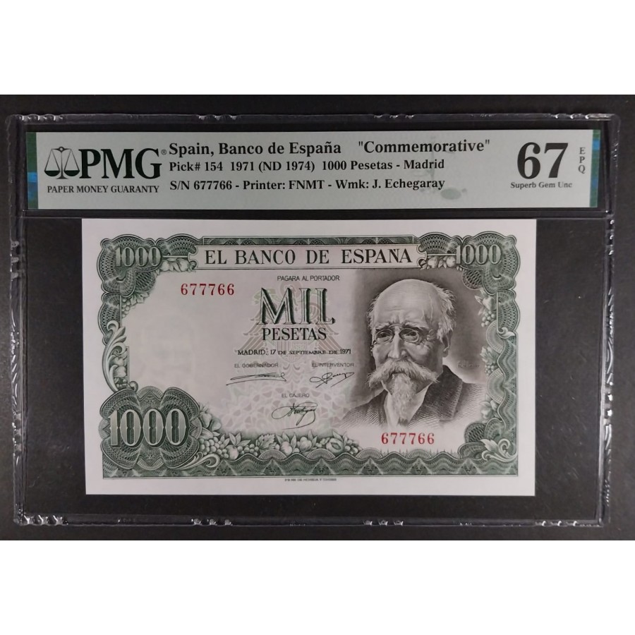 PMG 1000 PESETAS 1971 ECHEGARAY SIN SERIE PMG 67 EPQ BANCO DE ESPAÑA SIN CIRCULAR CERTIFICADO