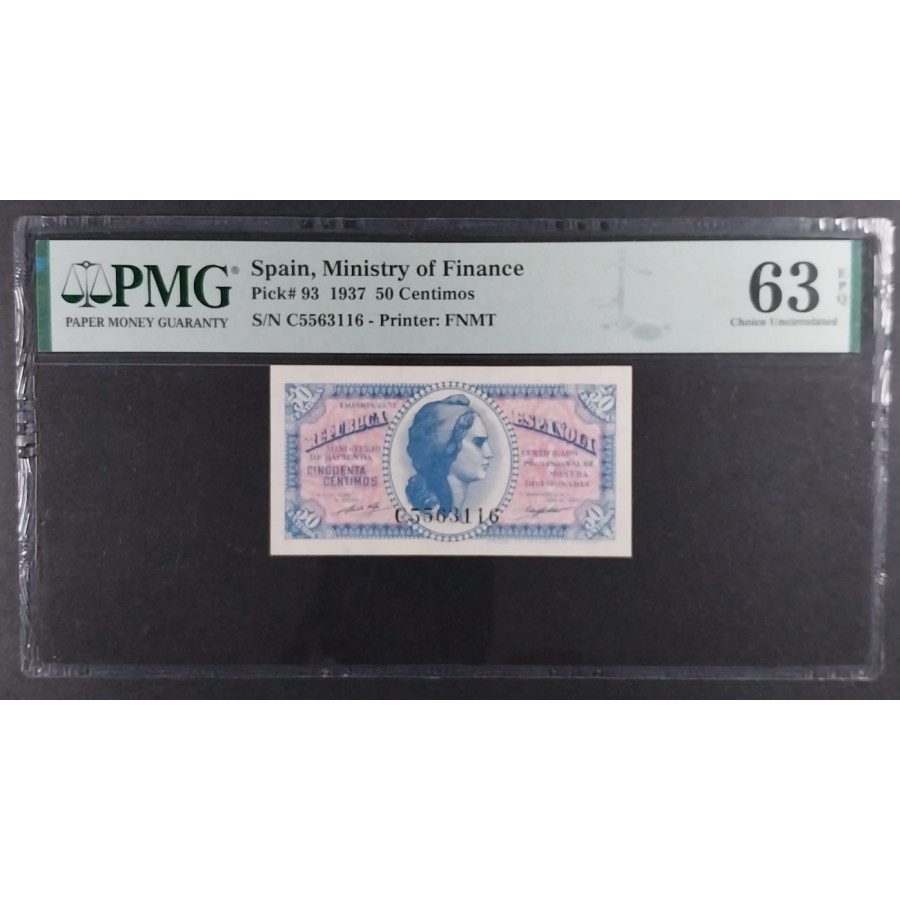 50 CÉNTIMOS 1937 SERIE C PMG 63 EPQ