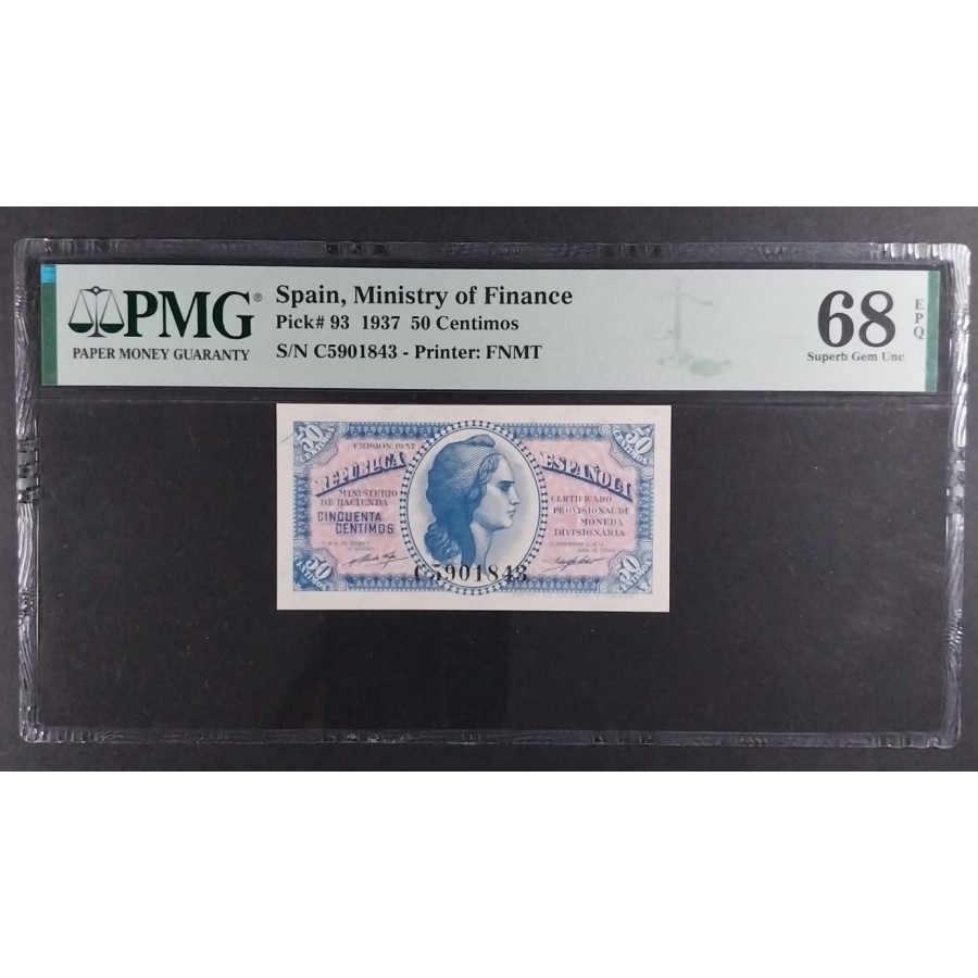 50 CÉNTIMOS 1937 SERIE C PMG 68 EPQ SC