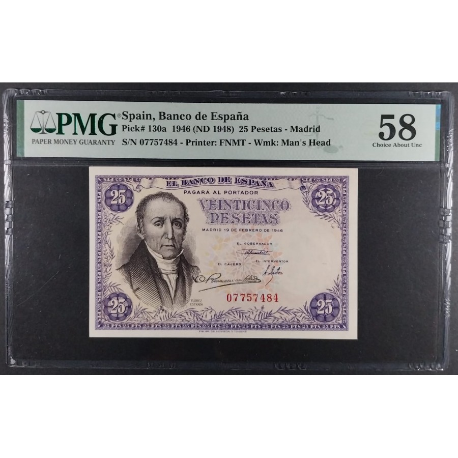 25 PESETAS 1946 FLOREZ ESTRADA SIN SERIE PMG 58