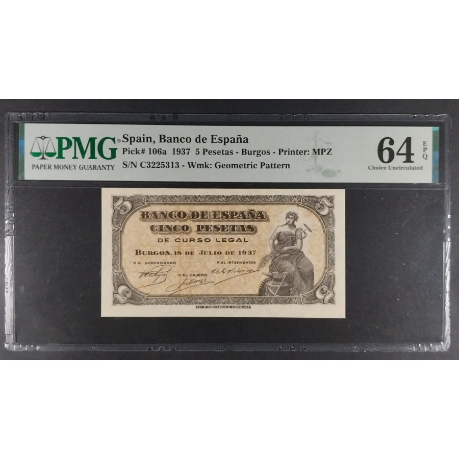 5 PESETAS 1937 SERIE C PMG 64 EPQ SC