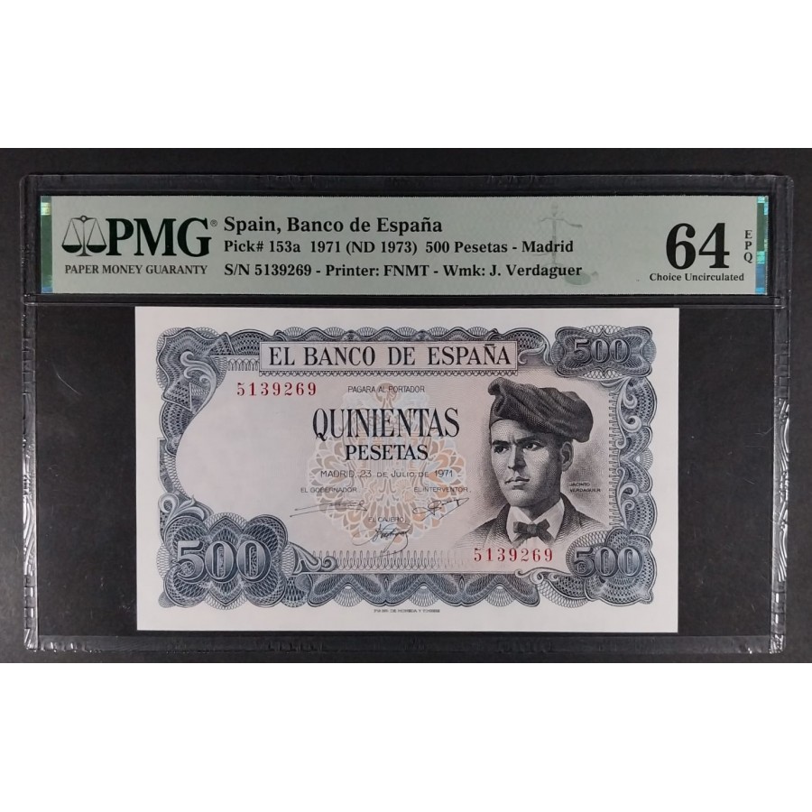 500 PESETAS 1971 SIN SERIE VERDAGUER PMG 64 EPQ SC
