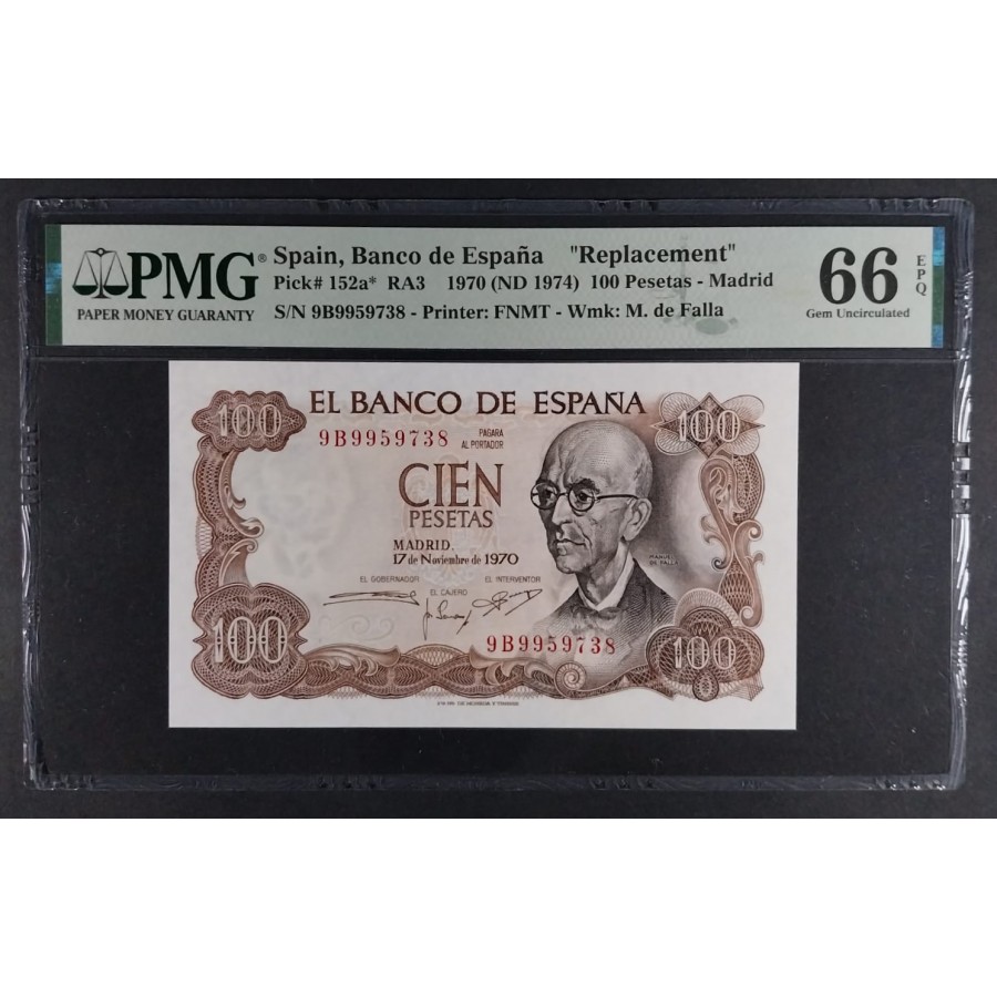 100 PESETAS 1970 FALLA SERIE 9B (Serie de sustitución) PMG 66 EPQ