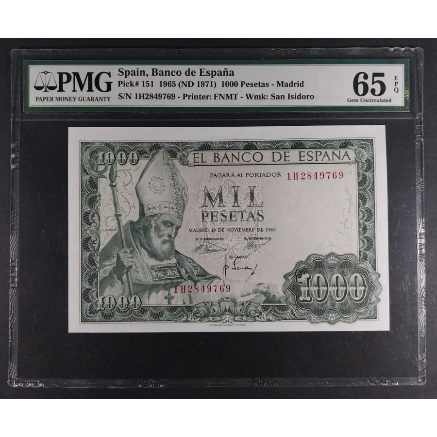 1000 PESETAS DE 1965 OBISPO SAN ISIDORO SERIE 1H PMG 65 EPQ