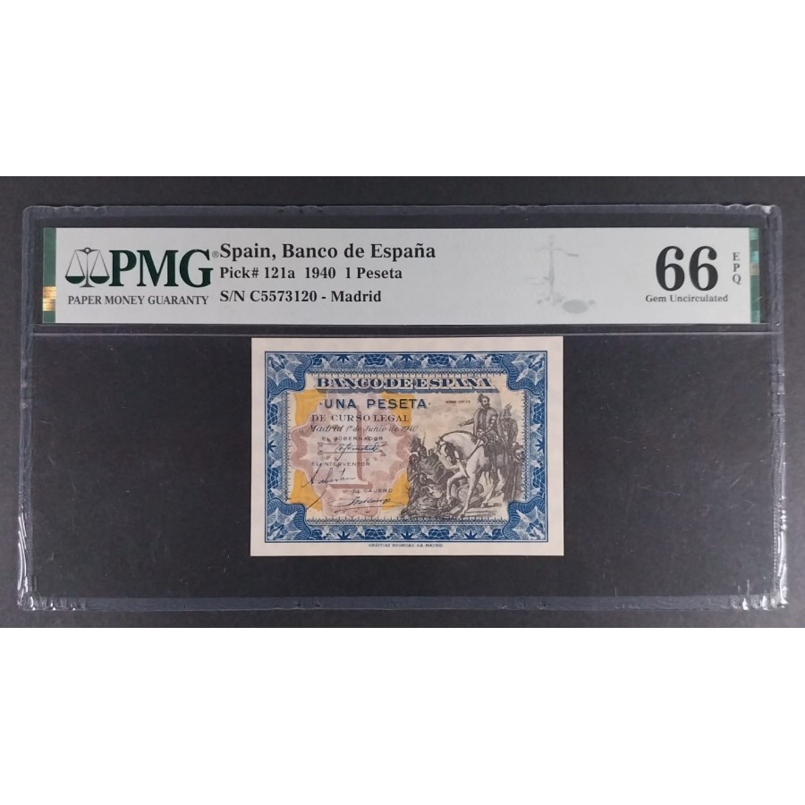 1 PESETA 1940 HERNÁN CORTES SERIE C PMG 66 EPQ SC CERTIFICADO