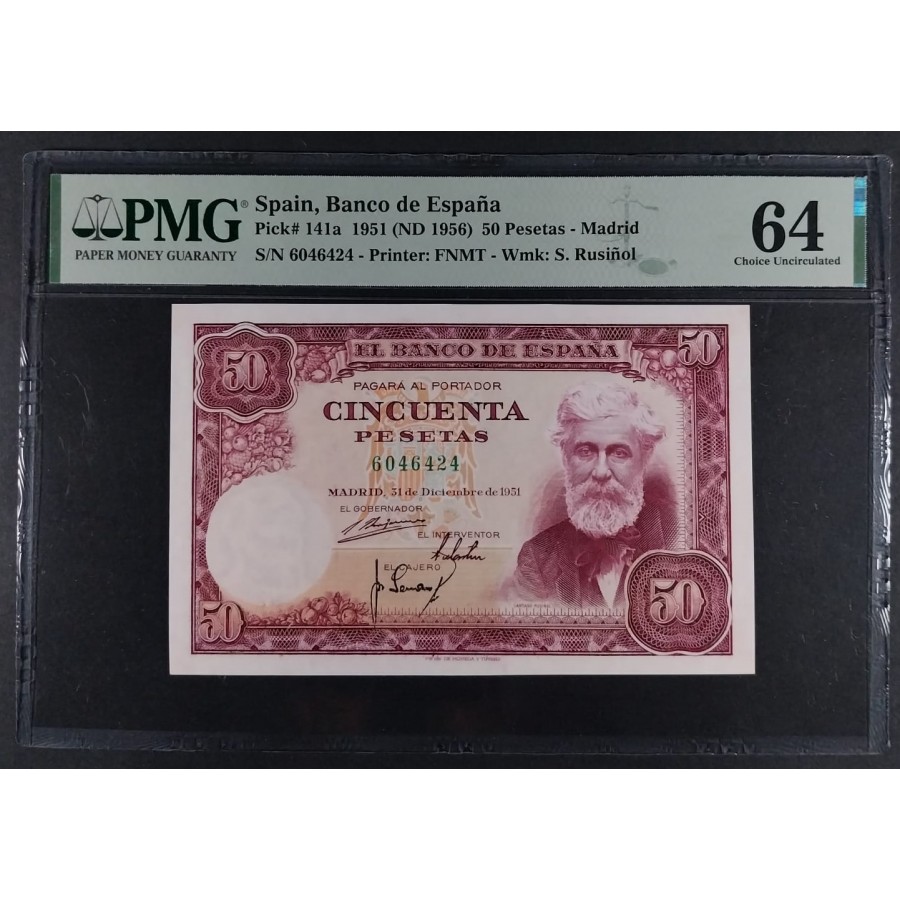 50 PESETAS 1951 RUSIÑOL SIN SERIE PMG 64
