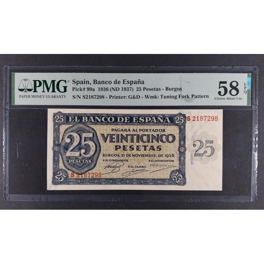25 pesetas 1936 Serie S .ULTIMA SERIE EMITIDA PMG 58 EPQ