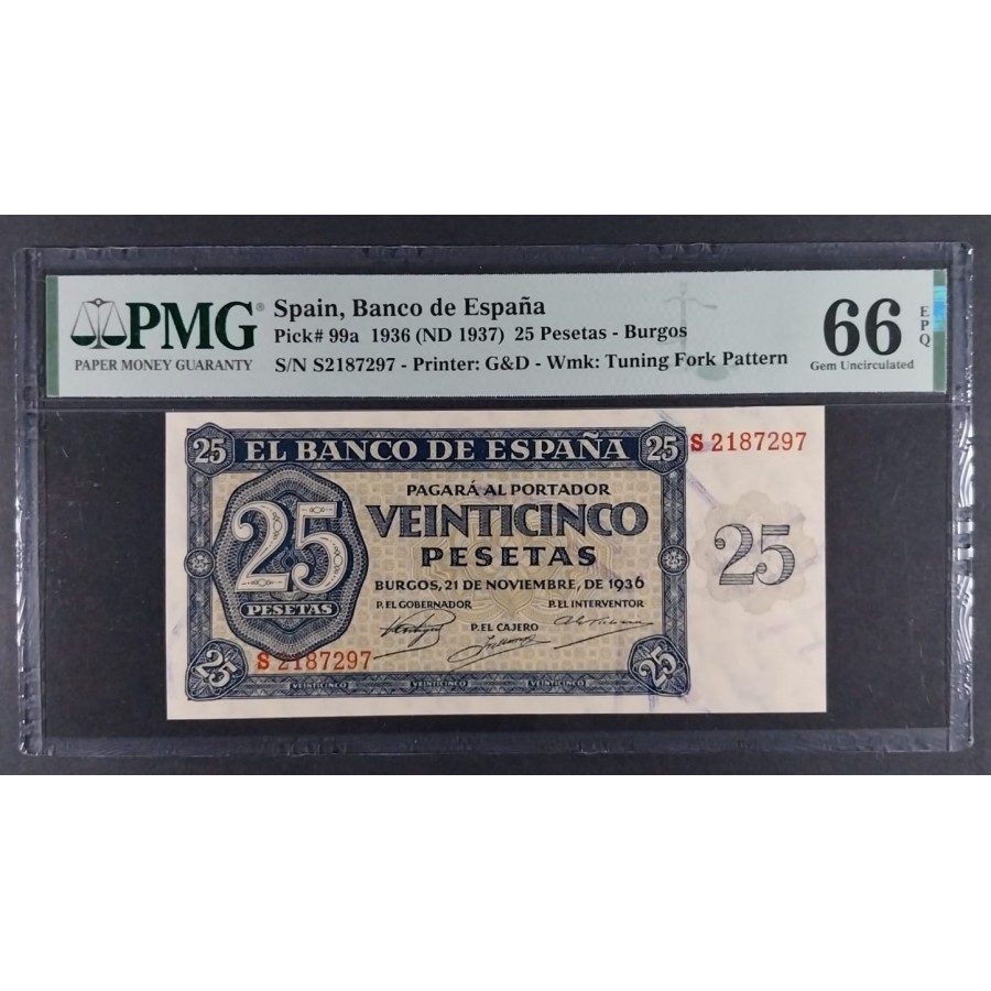 25 pesetas 1936 Serie S .ULTIMA SERIE EMITIDA PMG 66 EPQ