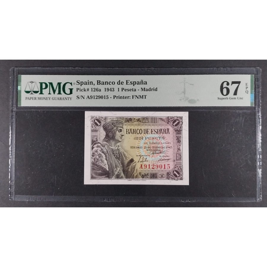 1 PESETAS 1943 (REY CATÓLICO) SERIE A PMG 67 EPQ SC