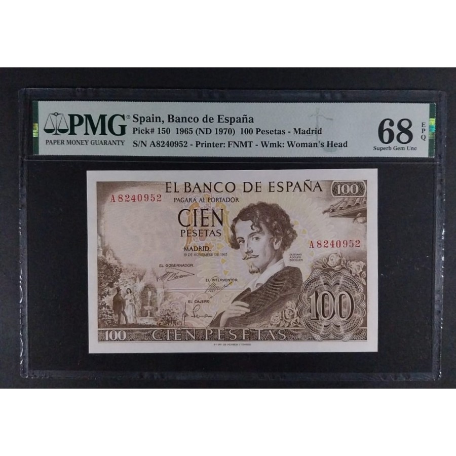 100 PESETAS 1965 SERIE A PMG 68 EPQ TOP POP