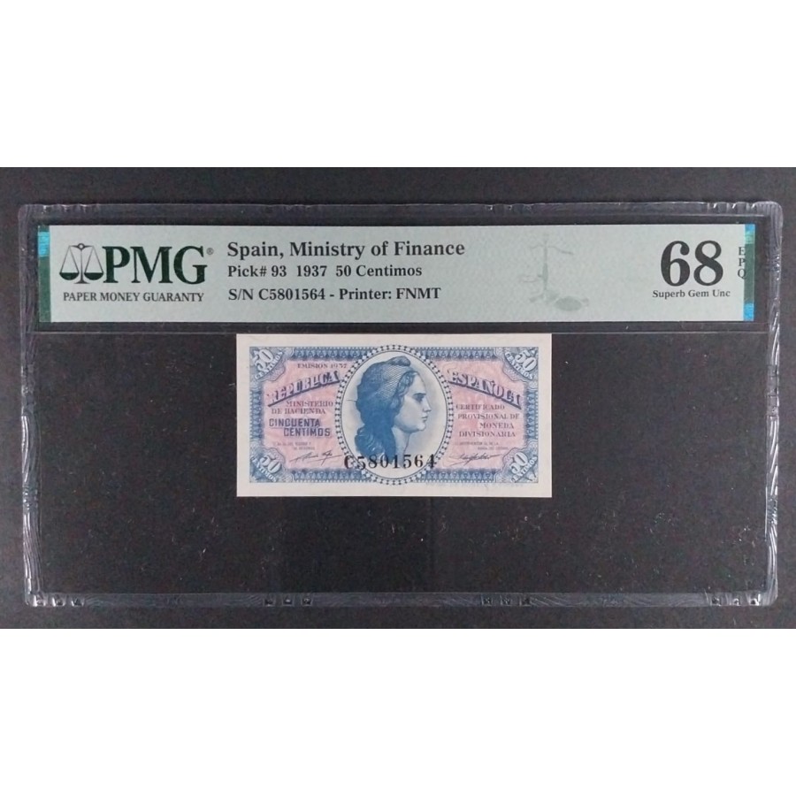50 CÉNTIMOS 1937 SERIE C PMG 68 EPQ SC