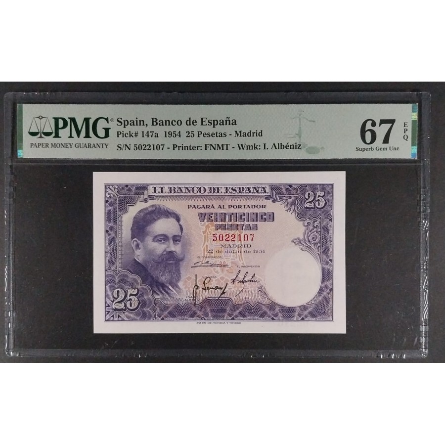 25 PESETAS 1954 SIN SERIE PMG 67 EPQ