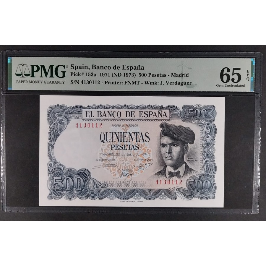 500 PESETAS 1971 SIN SERIE VERDAGUER PMG 65 EPQ SC