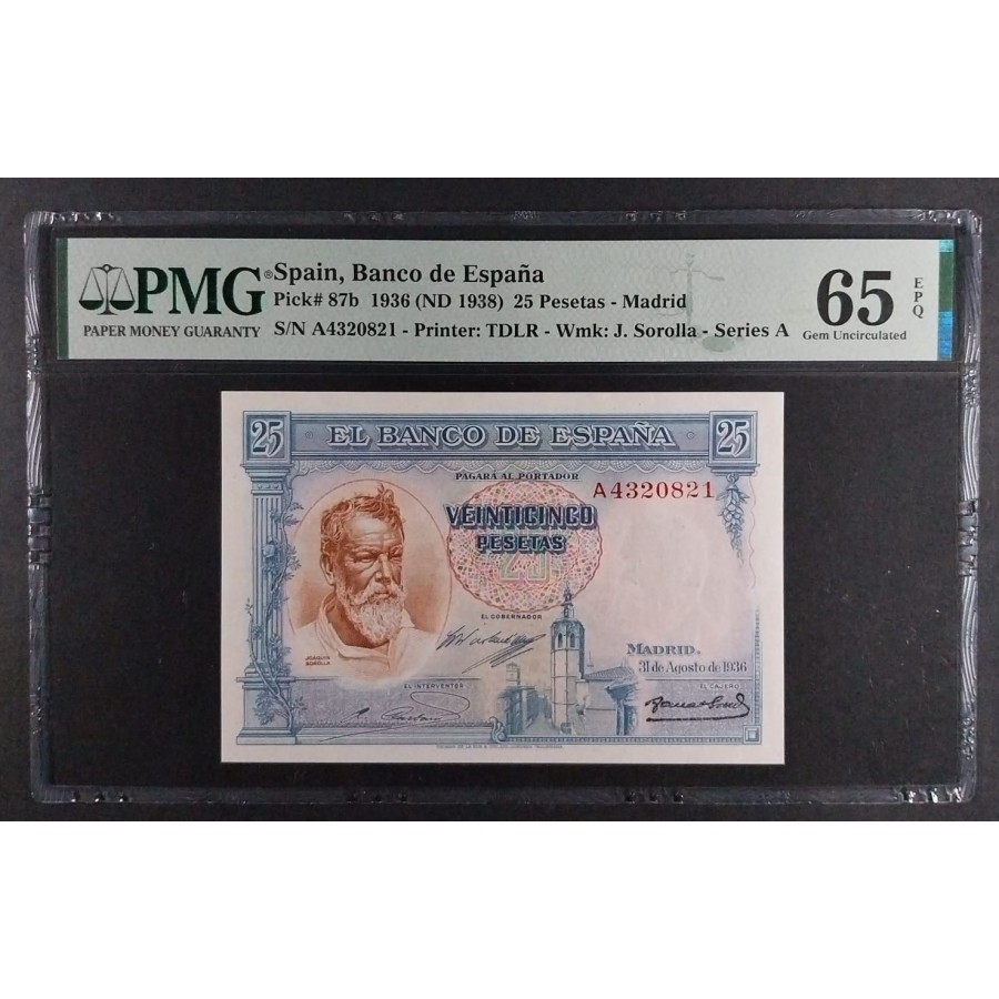 25 PESETAS DE 1936 SOROLLA PMG 65 EPQ SC