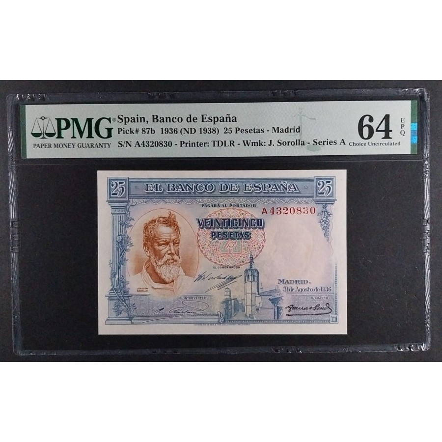 25 PESETAS DE 1936 SOROLLA PMG 64 EPQ SC