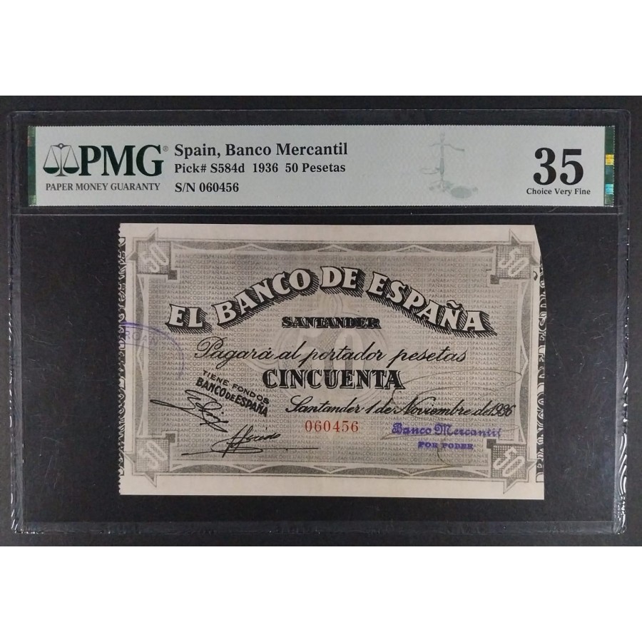 50 PESETAS 1936 SANTANDER (MERCANTIL) PMG 35