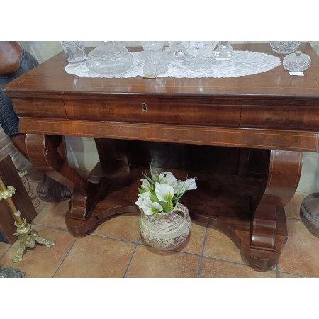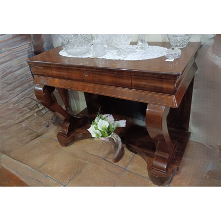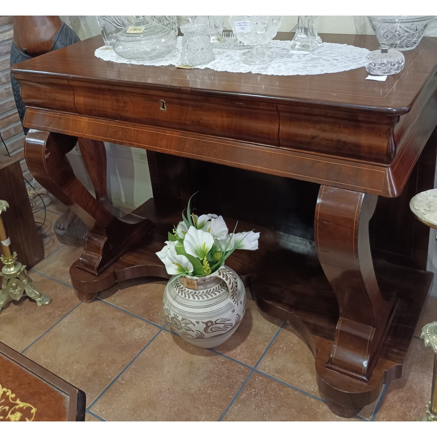 ENTRADA DE CAOBA Y MARQUETERÍA ANTIGUA. S.XIX